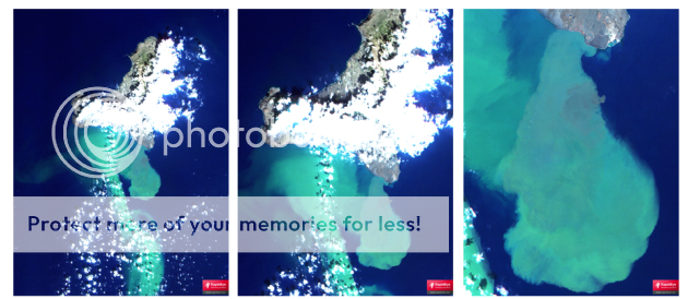 Señala que ayer domingp aparecieron manchas negras en el mar con material piroclástico flotando que, a las dos o tres horas, se hundieron otra vez.